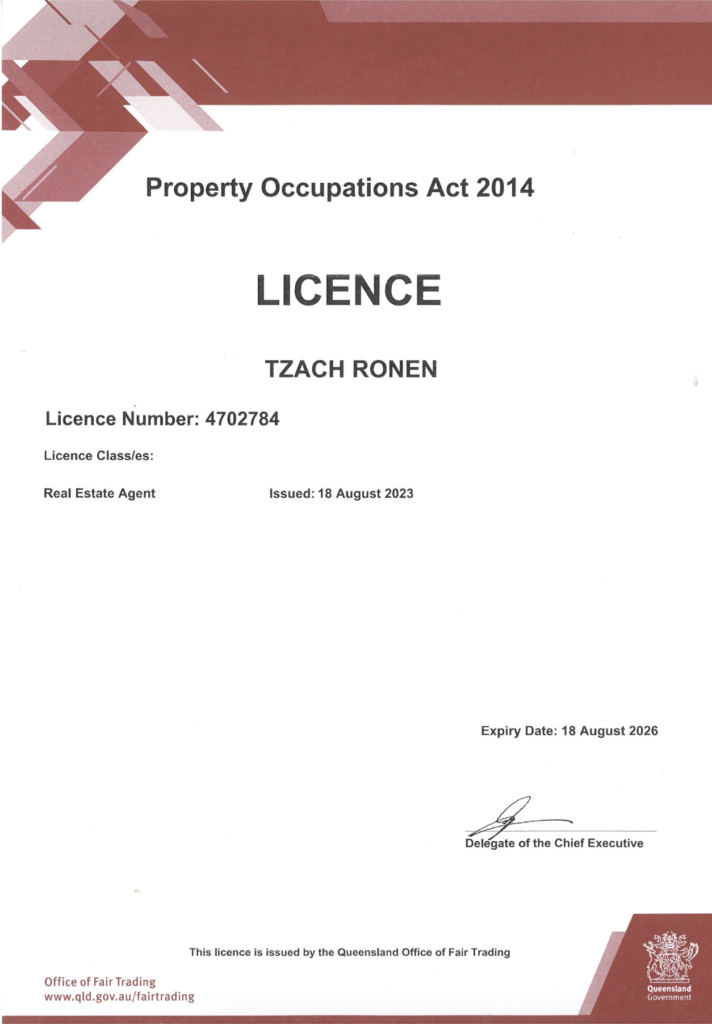 סוכן נדל"ן מורשה במדינת קווינסלנד משנת 2023